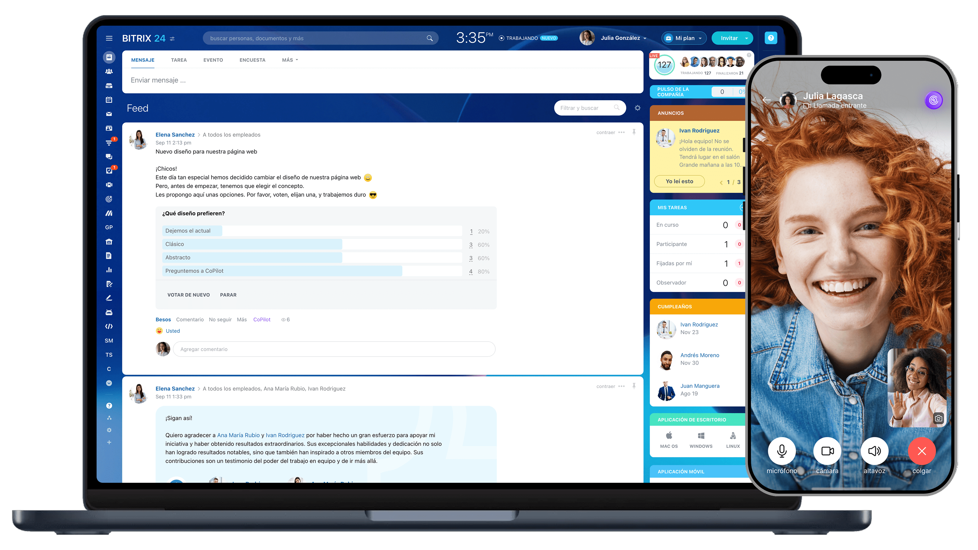 Desde el principio nos sorprendió la combinación de muchas características útiles que Bitrix24 tiene para ofrecer. Utilizamos Bitrix24 en las áreas de gestión de proyectos, CRM, y la comunicación interna de la empresa.