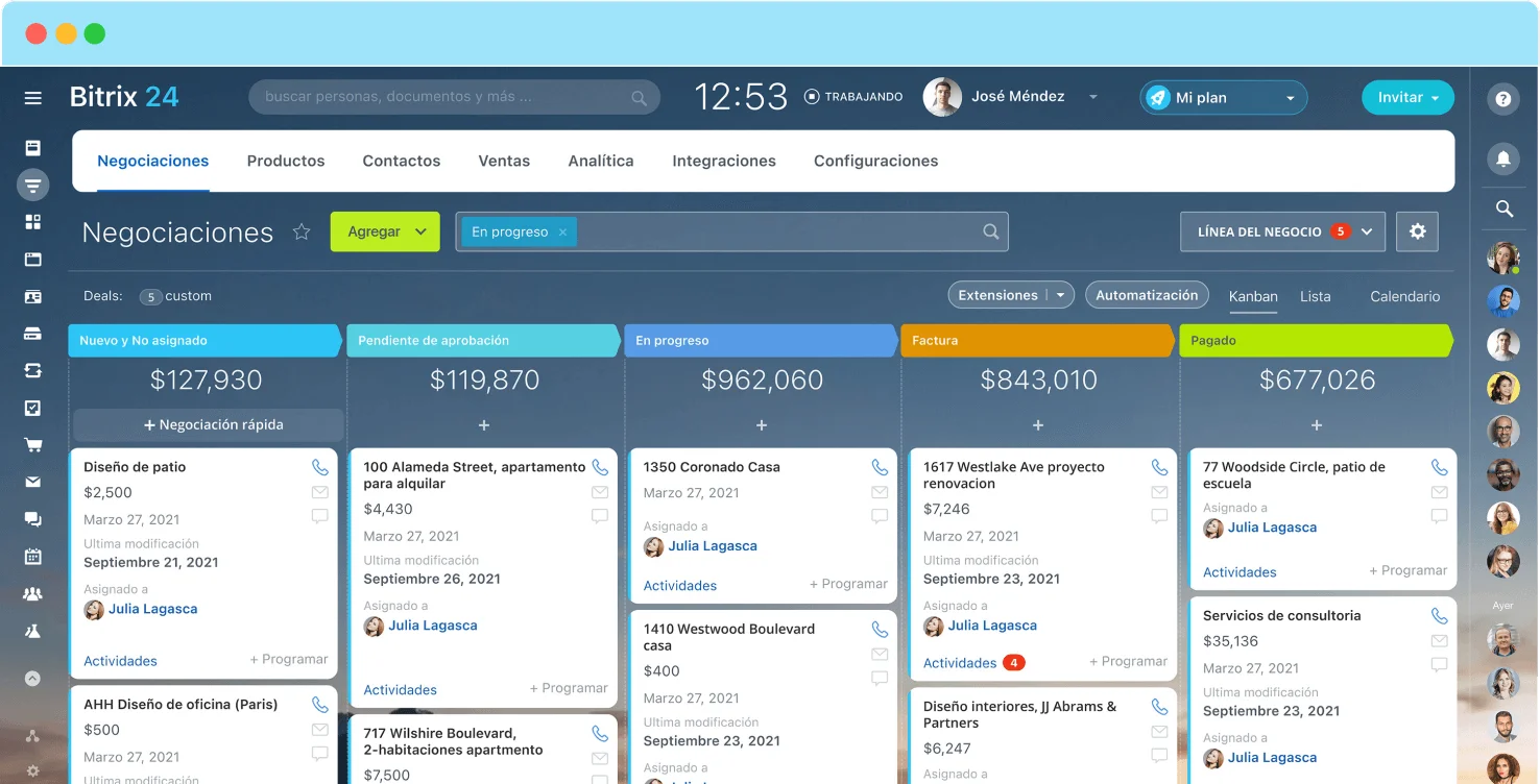 Una característica destacada de Bitrix24 es su capacidad para unificar la comunicación con los clientes en un solo sistema. Los equipos de ventas pueden utilizar diferentes canales de comunicación, como correo electrónico, chat en vivo y llamadas telefónicas, para interactuar con los clientes de manera rápida y eficiente. Además, Bitrix24 ofrece la integración con WhatsApp, la plataforma de mensajería instantánea más popular del mundo, lo que permite una comunicación aún más efectiva y versátil.