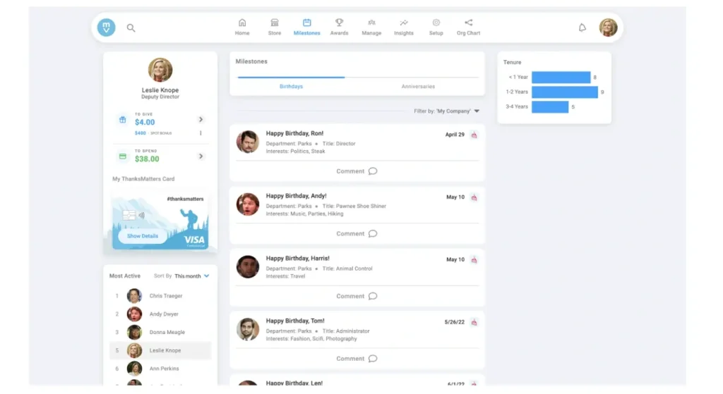 Destaca por su interfaz intuitiva, alto nivel de participación (más del 90%) y una estructura de precios accesible, con un plan gratuito ideal para comenzar. Además, ofrece analíticas para medir el impacto real del reconocimiento en el clima laboral.