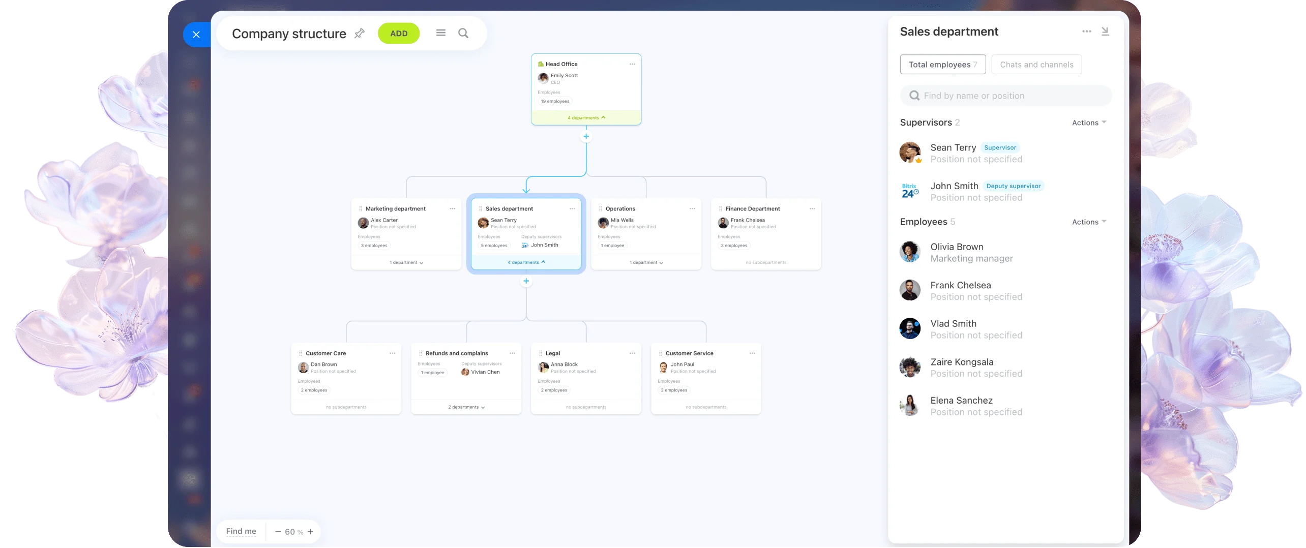 Obtén una visión general de tu organigrama y la flexibilidad para manejar a tus equipos como nunca antes. La nueva sección de Estructura de la Compañía te permite mover, asignar y reorganizar con la facilidad de arrastrar y soltar – porque los grandes equipos necesitan marcos adaptables y flexibles.