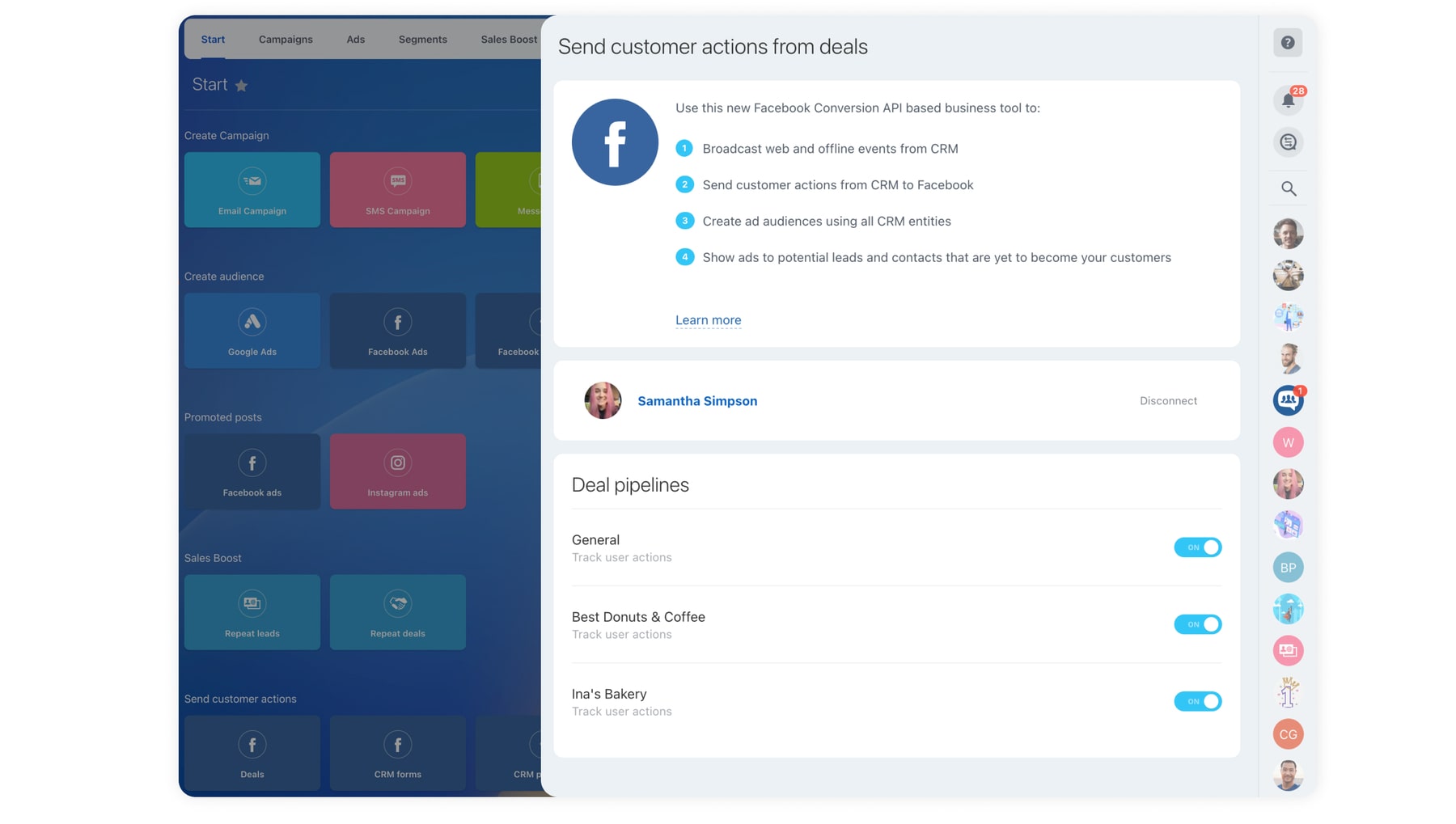 ¿Abrumado porque las expectativas de sus clientes son cada vez mayores? En este nuevo mundo de grandes datos, la venta minorista inteligente está relacionada con la atención al cliente. Bitrix24 lo ayuda a crear experiencias de compra integradas y personalizadas, que generan mejores ventas, aumentan la fidelidad hacia la marca, y aumentan la conversión de las ventas. Gane más clientes revelando sus necesidades ocultas y afianzando las relaciones.