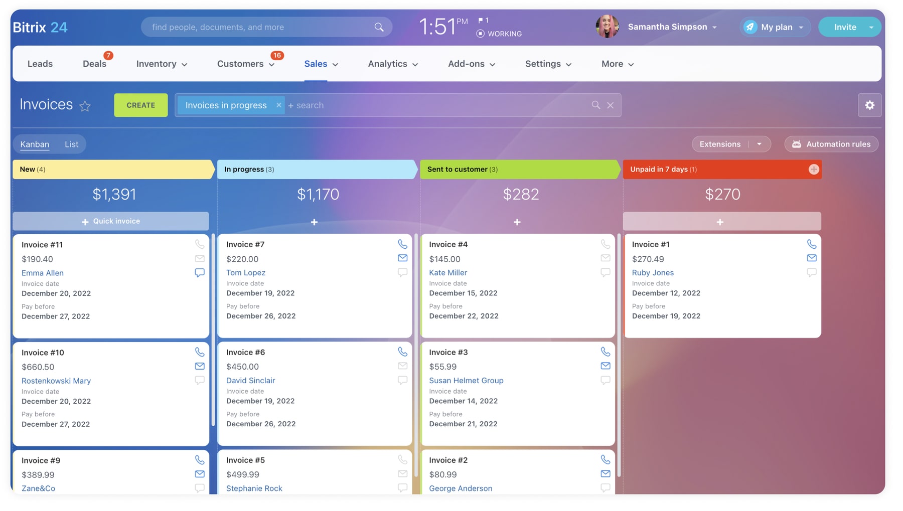 Mantenga todo su trabajo en una plataforma centralizada con la capacidad de crear facturas y mejorar el seguimiento de las ventas.