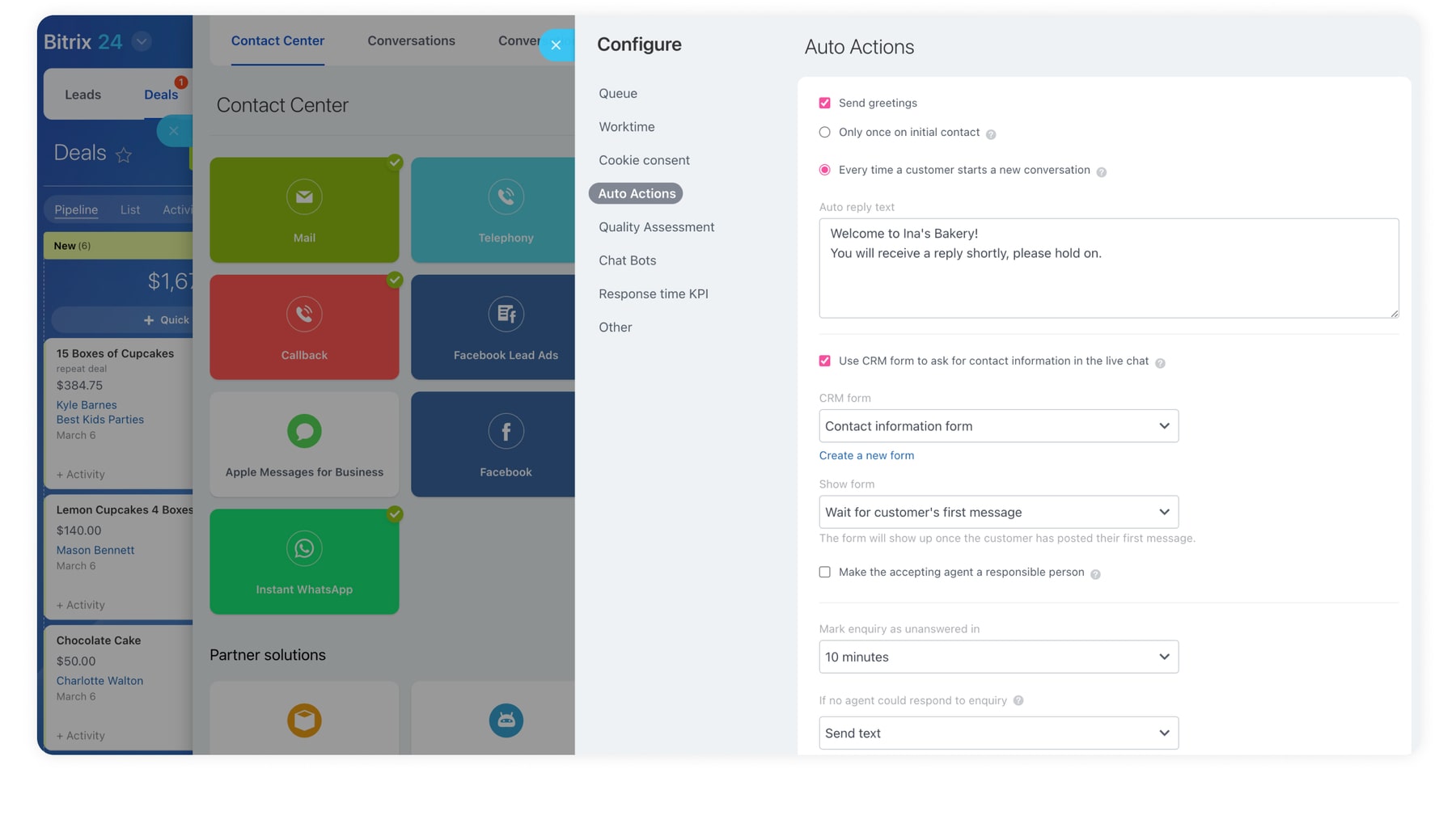 Comuníquese más fácilmente con los visitantes de su sitio e instalando el bot de chat y la IA de Bitrix24. Este soporte ampliará las capacidades de su empresa.