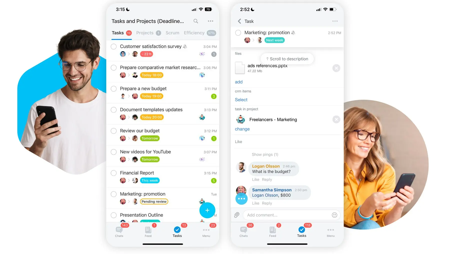 Lleva Bitrix24 donde quiera que vayas. Con nuestra aplicación móvil fácil de usar, tendrás acceso en tu teléfono a todo lo que Bitrix24 ofrece en una aplicación de escritorio. Contar con una herramienta para la administración de tareas en tu teléfono significa que podrás ser más flexible con tu ubicación y horario. Si tu empresa necesita que los empleados estén en varios lugares o de viaje, contar con acceso a las funciones desde la aplicación móvil será un beneficio increíble para todo el equipo.