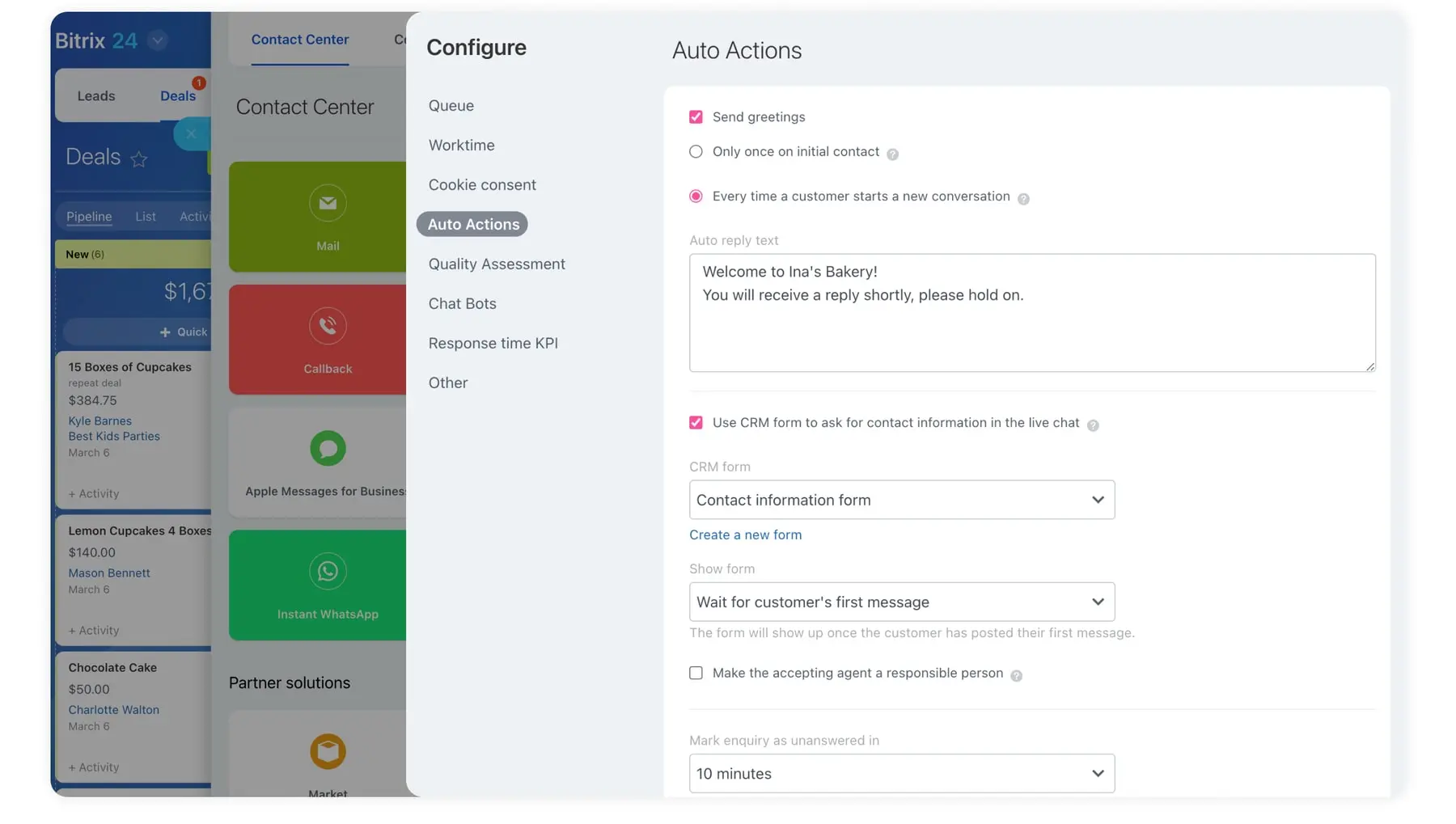 Cuando los clientes llaman porque tienen un problema o duda, ¿quién los ayuda? Bitrix24 proporciona a las empresas un Contact Center, con diferentes opciones para que se adapten a sus necesidades. Si tu empresa necesita un centro de atención al cliente automatizado, podemos ayudarte a configurarlo. Si necesitas ayuda con tu sitio web o para configurar una red de chat en tu página de inicio, también podemos hacerlo.