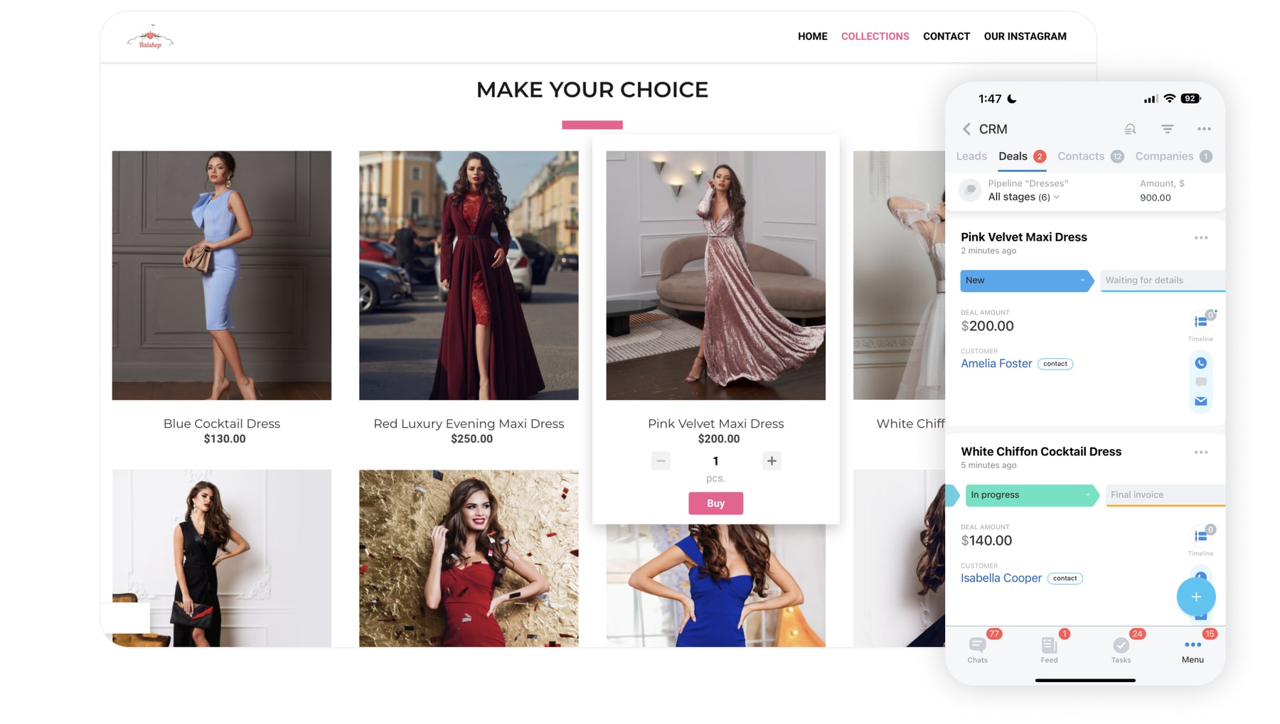 Dado el creciente número de usuarios de Internet que acceden a sitios desde sus teléfonos, Bitrix24 sabe que los sitios web deben servir tanto en un dispositivo móvil como en una computadora. Con esta función, puedes hacer que tu sitio funcione de manera excelente en cualquier dispositivo. Ten la seguridad de que cualquier sitio web que construyas tendrá acceso a nuestras herramientas de optimización móvil. Si utilizas la aplicación móvil de Bitrix24, también podrás ver en tu teléfono toda la información disponible de la versión escritorio.