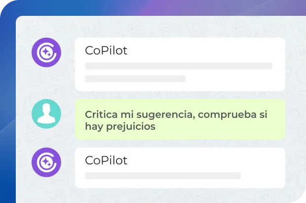 Tan solo escribe un tema y el tono (por ejemplo, formal, atractivo, informativo, etc.), y CoPilot se encargará del resto. También puedes pedirle a nuestra IA que reescriba un texto con una perspectiva o un tono diferente.