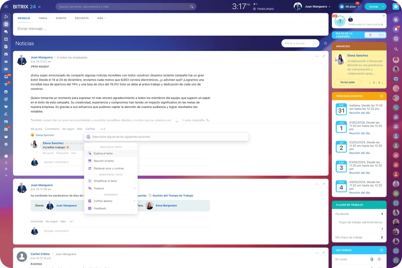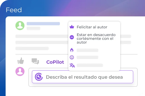 Cuando se trata de la comunicación con tu equipo, CoPilot actúa como tu asistente confiable y experto. Puedes escribir un anuncio, responder a un comentario, proponer una idea o incluso sugerir una crítica constructiva.