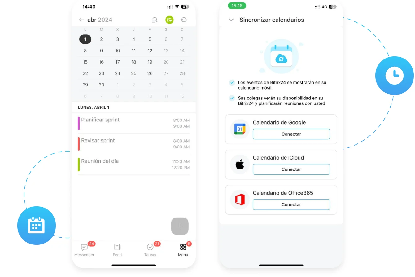 Organiza reuniones y eventos, invita a tus clientes y a usuarios externos, programa citas y planifica tu día, todo con la aplicación móvil Bitrix24.