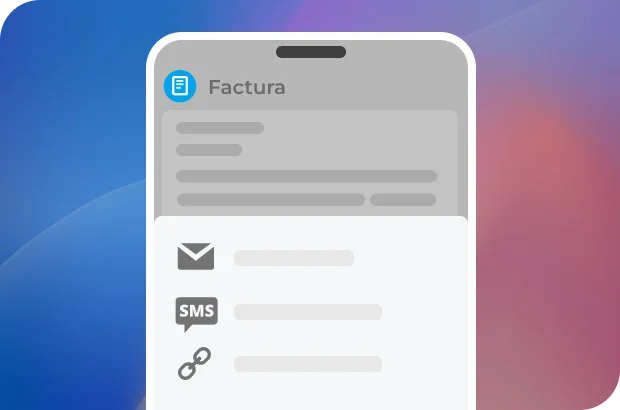 Genera una factura en solo un toque desde la negociación dentro del CRM y envíala al cliente por correo electrónico o SMS.