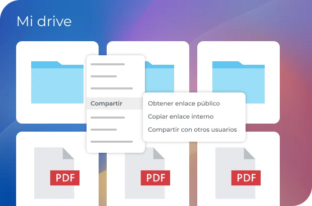 Almacena documentos importantes, edítalos en conjunto y compártelos en línea con tu equipo y usuarios externos. Crea una carpeta de grupo para tu departamento o proyecto e invita a tus compañeros de equipo a colaborar en línea.