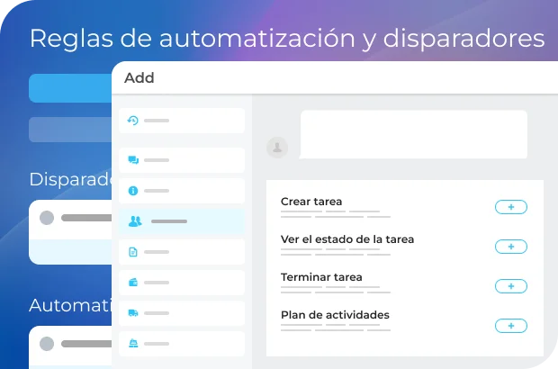 Puedes configurar el sistema para crear tareas automáticamente, con base en ciertas acciones en el CRM (p. ej.: cuando una negociación se mueve a la etapa de facturación, puedes configurar una tarea para contabilidad).