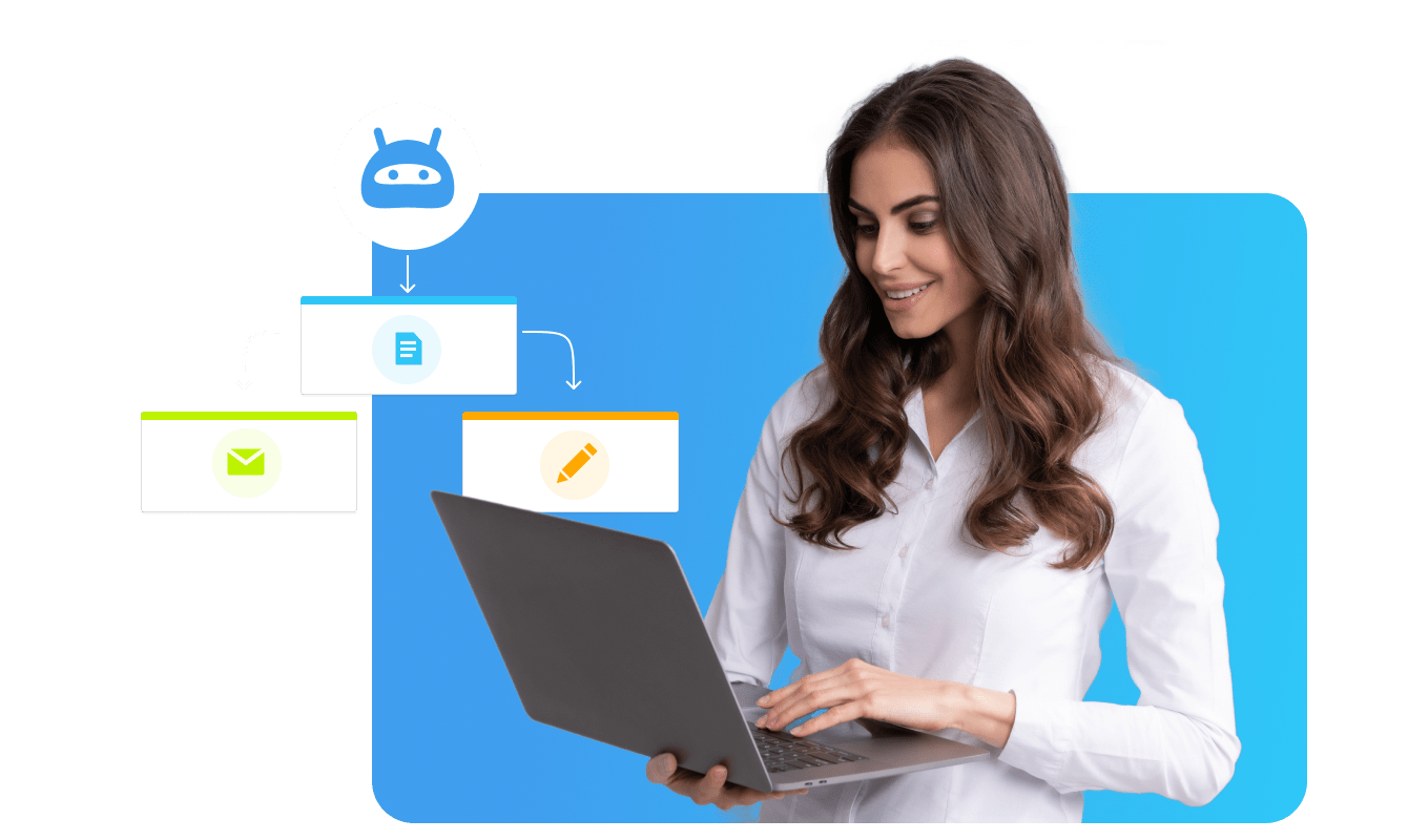 Automatiza cualquier proceso de negocio estándar (aprobación de documentos, solicitudes de compra, informes de gastos, etc.) y ahorra hasta un 80 % de tu tiempo completando tareas de rutina.