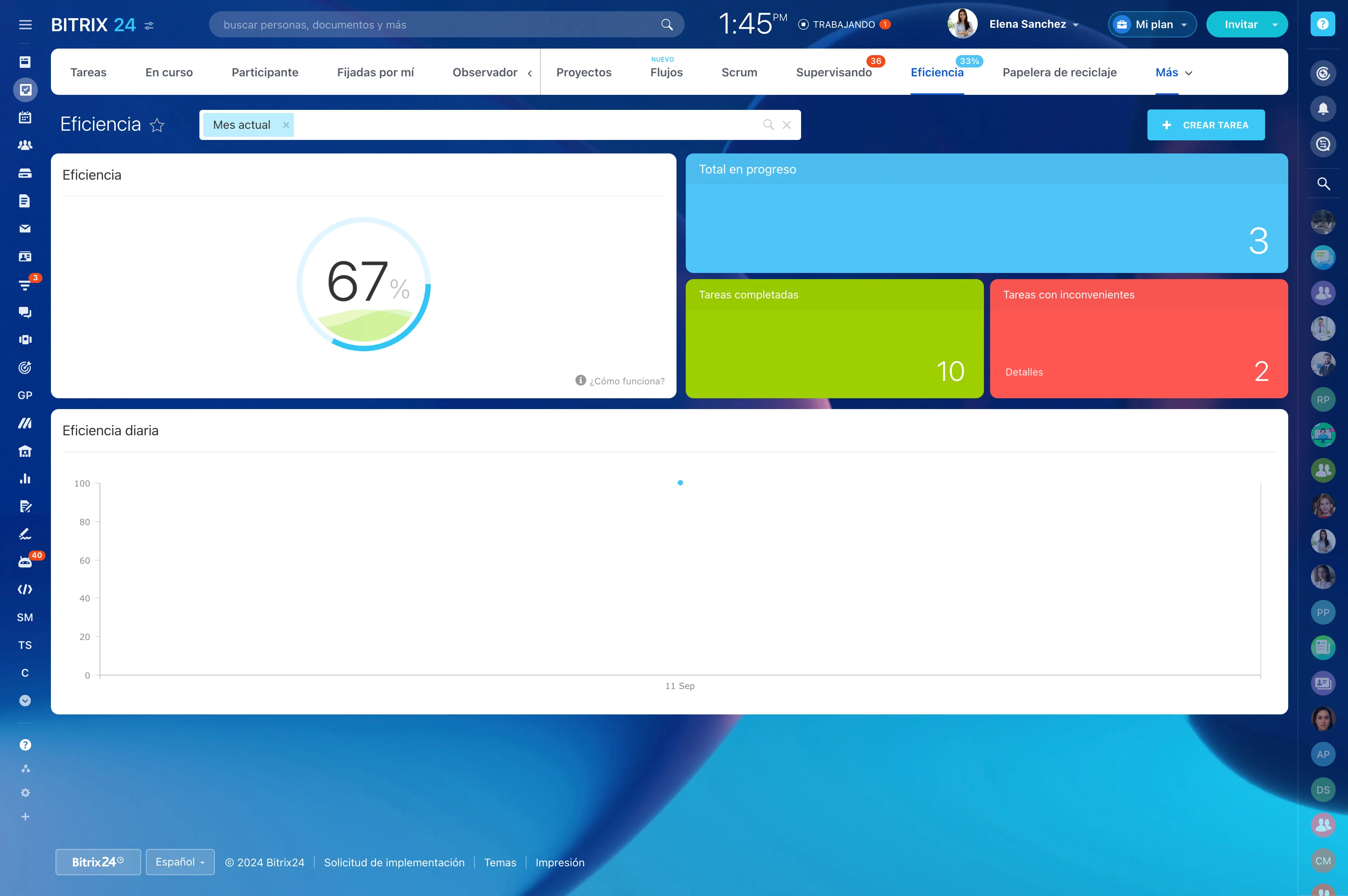 Lleva la eficiencia de tu equipo de trabajo al siguiente nivel y obtén más logros, usando las herramientas para eficiencia de empleados de Bitrix24.