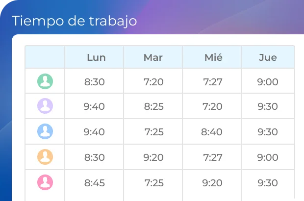 Haz un seguimiento del tiempo que tus empleados invierten en una tarea particular y mide su participación en los proyectos. Esta información puede usarse para un monitoreo del trabajo más eficiente y una mejor planeación de la carga del trabajo.