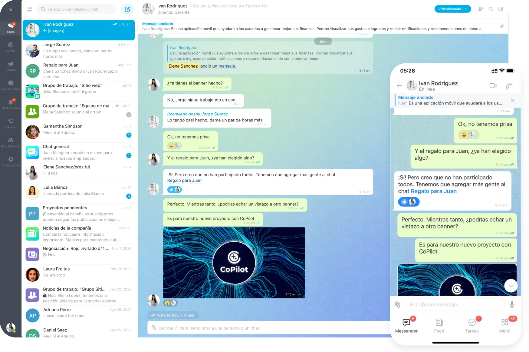 Bitrix24 Messenger garantiza una comunicación rápida, productiva y segura que está integrada de forma natural con el resto de nuestras herramientas de colaboración y CRM.