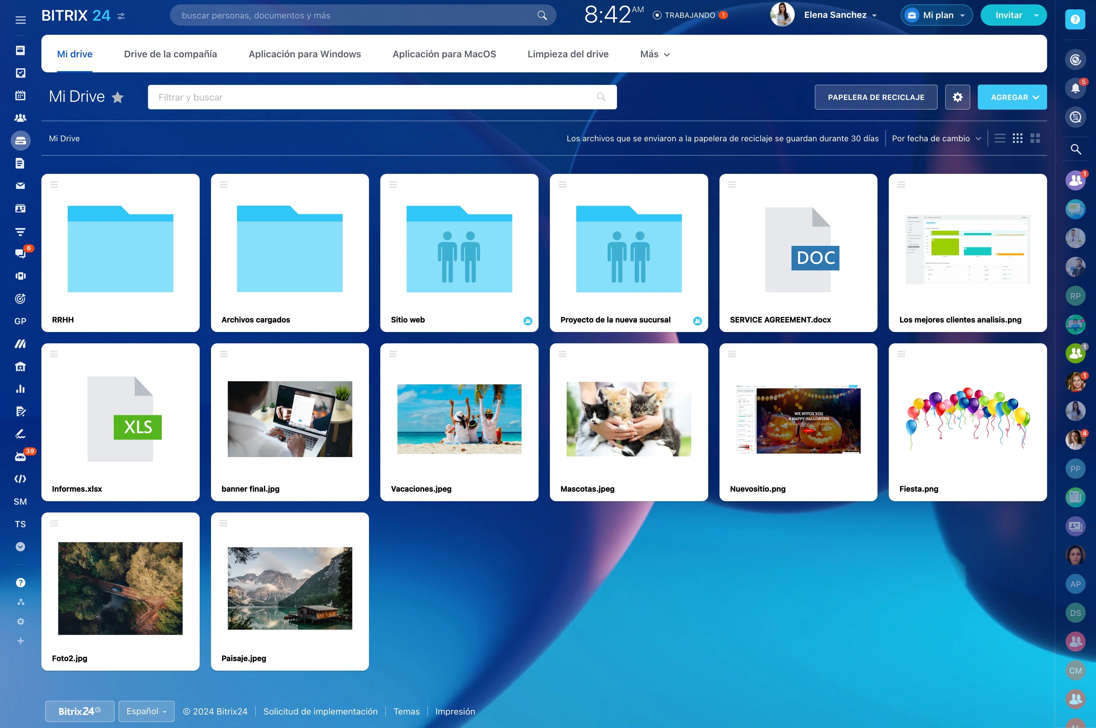 Bitrix24 te proporciona un almacenamiento en la nube, donde puedes crear, editar y compartir cualquier archivo de trabajo. Es fácilmente accesible desde dispositivos móviles y de escritorio, e integrado con Google Docs y Office 365. El drive de Bitrix24 es la opción perfecta para tus necesidades de colaboración de proyectos en línea.