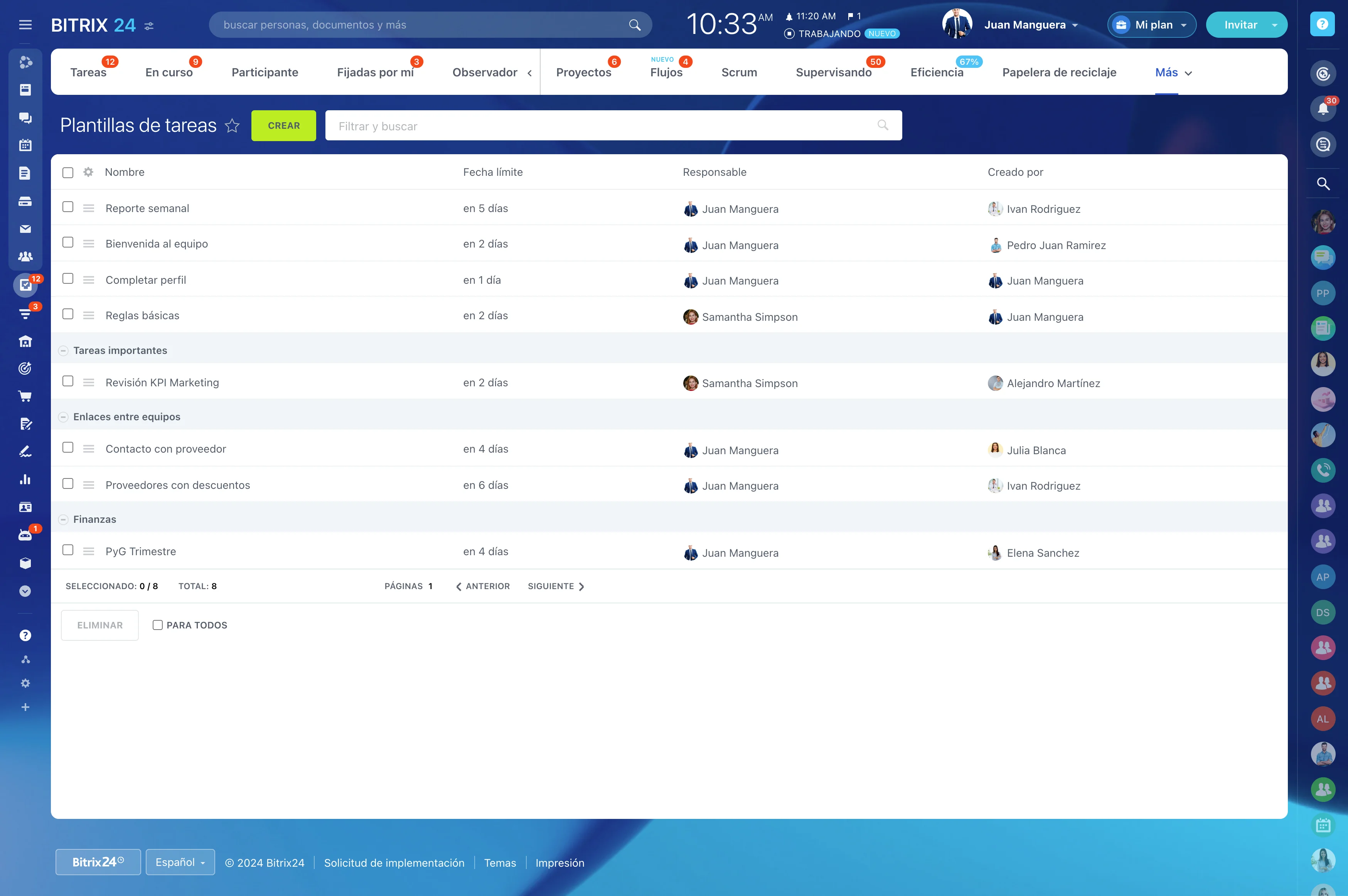 Si tienes que asignar la misma tarea una y otra vez, ¿por qué no convertirla en una plantilla y ahorrar tiempo? Bitrix24 te permite hacerlo.